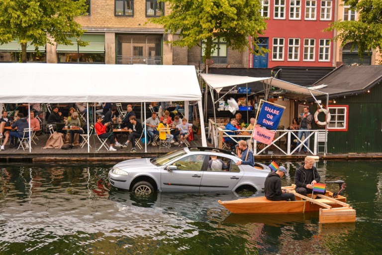 Chiar vizavi de gara centrală din Copenhaga este Tivoli, cunoscutul parc de distracții. Zicem totuși pas, preferăm să o luăm la picior prin oraș și ne îndreptăm spre Strøget, una dintre cele mai lungi străzi pietonale din Europa, plină cu magazine. Toate vitrinele sunt pline de curcubeie, care de care mai creative – e Pride Week în plină desfășurare și toți își arată susținerea.