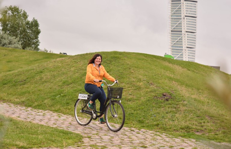 Malmö nu e capitală, dar nici un oraș foarte mic nu e. Însă traficul, așa cum îl știm noi, lipsește cu desăvârșire. Probabil că duminică la 5 dimineața sunt atât de puține mașini în București și cred totuși că nici atunci. Transportul în comun pare foarte eficient cu autobuzele și tramvaiele lui verzi și, în plus, aici se merge mult pe bicicletă. Să nu credeți, însă, că e ca prin unele zone din Amsterdam în care pista de biciclete geme de participanți: și bicicliștii sunt rarefiați. Nu știu dacă am nimerit noi o perioadă de concedii și la ei și era gol orașul (n-aș zice, totuși, văzând omenirea de la festival), dar sigur cei 500 de km de piste de biciclete din oraș ajută la o distribuție excelentă a „încărcării”. Duminică dimineață luăm și noi biciclete de la hotel și ne propunem să mergem pe coastă, între mare și mult verde. Pe mine mă trec toate emoțiile: n-am mai mers de ani de zile pe bicicletă și nici în trecut abilitățile mele n-au depășit cu mult ținutul în echilibru și mersul drept înainte. E ok însă; reușesc să nu mă împrăștii și chiar mă bucur de experiență, deși mă aleg cu o porție bună de febră musculară. Costel își dorește să mergem susținut, să simtă că face un pic de mișcare, eu îmi doresc să mă opresc peste tot: ba pentru poze, ba pentru cafea, ba ca să vedem plaja. Facem la dus ca mine și la întors ca el și până la urmă iese pe plus plimbarea.
