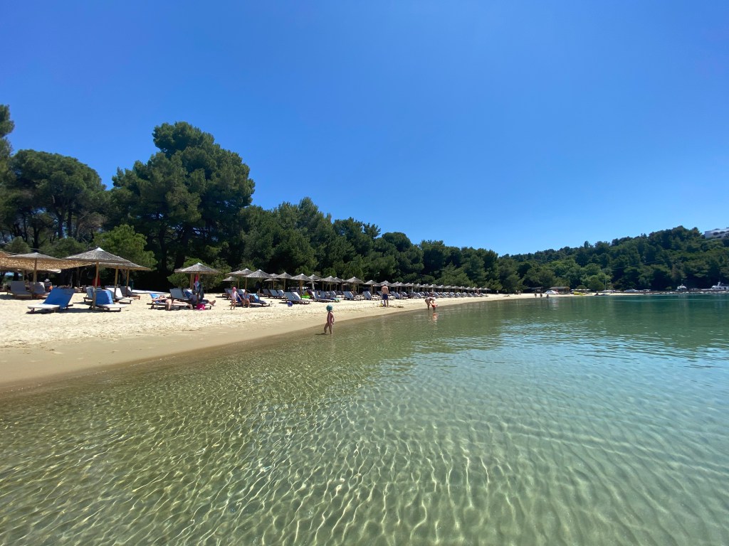 Pe scurt, în Skiathos sunt multe plaje tare frumoase, cele din sud cu acces facil de la drumul principal, în general cu intrare destul de lină în apă și mare liniștită. În nord, accesul se face pe drumuri de pământ sau chiar pe apă la unele, valurile sunt ceva mai mari, dar peisajele sunt mult mai spectaculoase, vibe-ul mai boem și chiar drumul în sine e o experiență. E cam păcat să ajungi în Skiathos și să stai pe o singură plajă; recomand închirierea unei mașini și explorat un pic, oricum ajungi super repede de oriunde până oriunde.