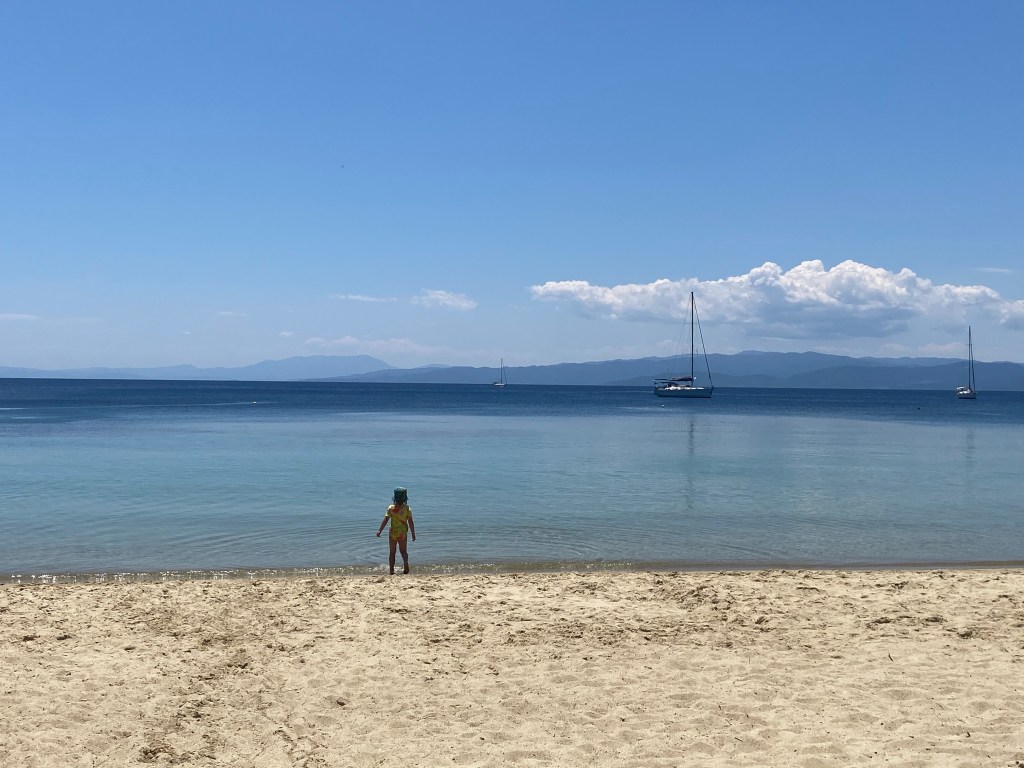 Cam atâtea plaje explorăm tura asta: puțintele, dar rezonabil cu doi copii mici, zic eu. Dacă mergeți cu copii mai mari sau chiar fără, puteți chiar să le luați la rând. Mai sunt idei și poze și în articolul din 2018; de exemplu Vromolimnos merită o vizită.