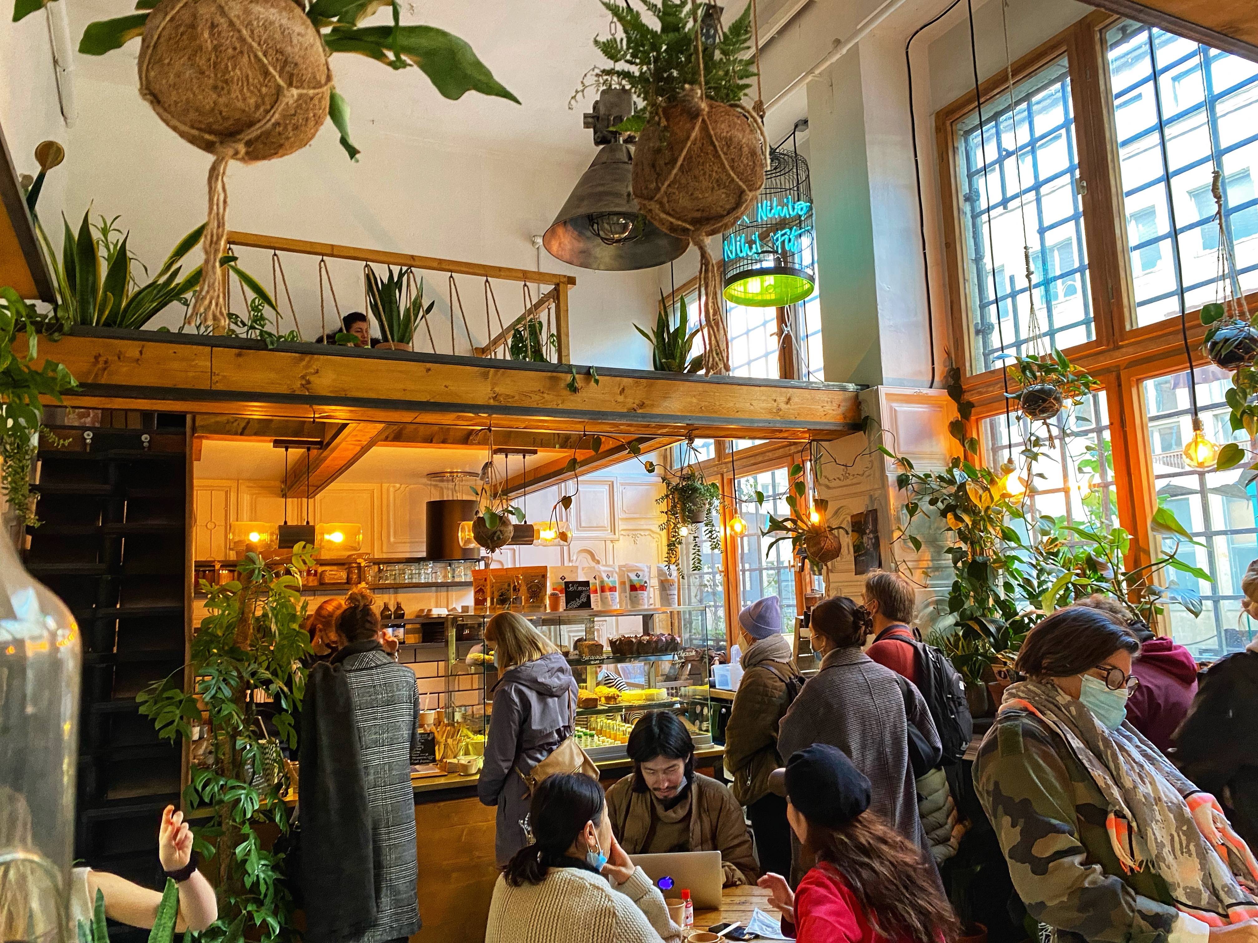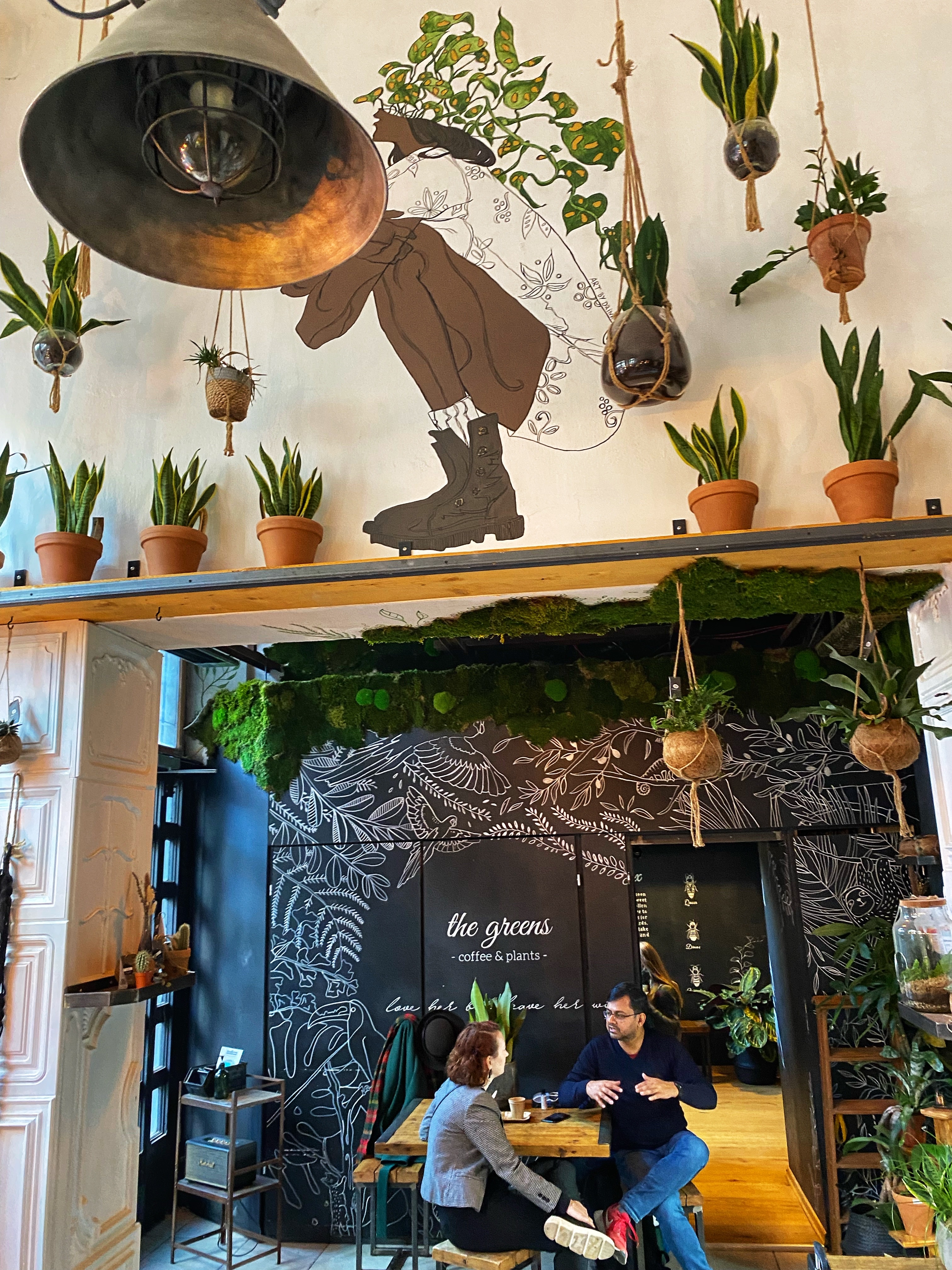 E o cafenea mititică şi aglomerată în centru, cu cafea de specialitate şi multe plante, cum îi zice şi numele. E genul de loc pe care sigur nu îl găseşti trecând pe stradă, pentru că e ascunsă într-un fel de alee – curte interioară industrială pe marginea râului. Îmi plac atmosfera şi cafeaua, aş fi apreciat o ceaşcă de ceramică în loc de carton, dar probabil că vând mult tip take away şi nu şi-au mai bătut capul. Mâncăm şi ceva orez cu legume şi unt de arahide care, în mod surpinzător pentru combinaţie, nu e rău. Opţiunile de mâncare sunt însă reduse, au mai mult chestii care acompaniază cafeaua.