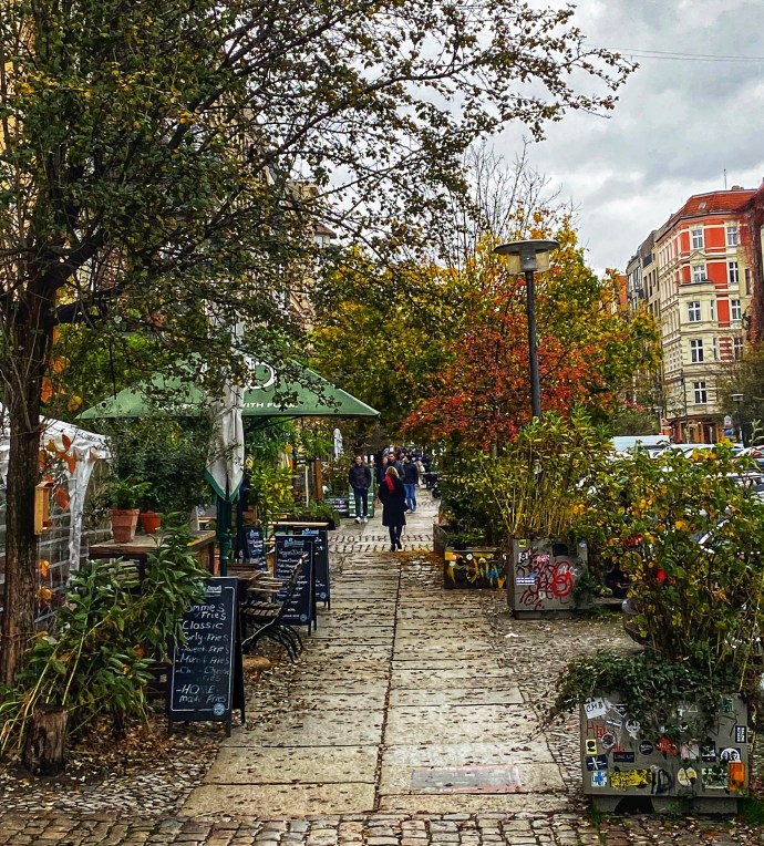 E unul dintre cartierele cool ale Berlinului (acum administrativ unit cu Friedrichschain) cu aceeaşi poveste: întâi zonă pentru imigranţi, squatters (am învăţat şi eu recent cuvântul şi nu i-am găsit echivalentul în română; e vorba despre persoanele care ocupă o propietate, de obicei abandonată, fără drepturi legale), apoi studenţi şi artişti. Iar când zona capătă un aer dezirabil, apar cei cu posibilităţi materiale mai ridicate, chiriile cresc, se dezvoltă mai multe business-uri. Zona e în proces de gentrificare. Cred că e un proces firesc, nu neaparat minunat pentru rezidenţii iniţiali, dar zonele care se se dezvoltă astfel devin extrem de atractive pentru cei aflaţi în vizită. Vibe boem, multicultural, multe baruri şi locuri de socializare, artă stradală; e de plimbat pe aici. Doar că noi ajungem cam pe întuneric şi ploaie, trebuie să repetăm.
