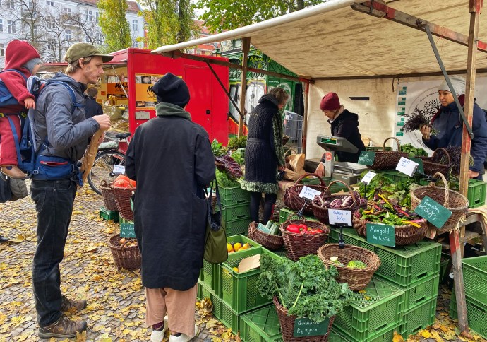 În sâmbăta plecării mergem să luăm micul dejun la Silo, tot în Friedichshain, apoi căscăm ochii la piaţa de sâmbătă din piaţeta alăturată. În general mâncare, dar şi ceva artizanat şi alte chestii, lumea din cartier, o bucăţică de viaţă cotodiană. Dăm o tură, ne place atmosfera.