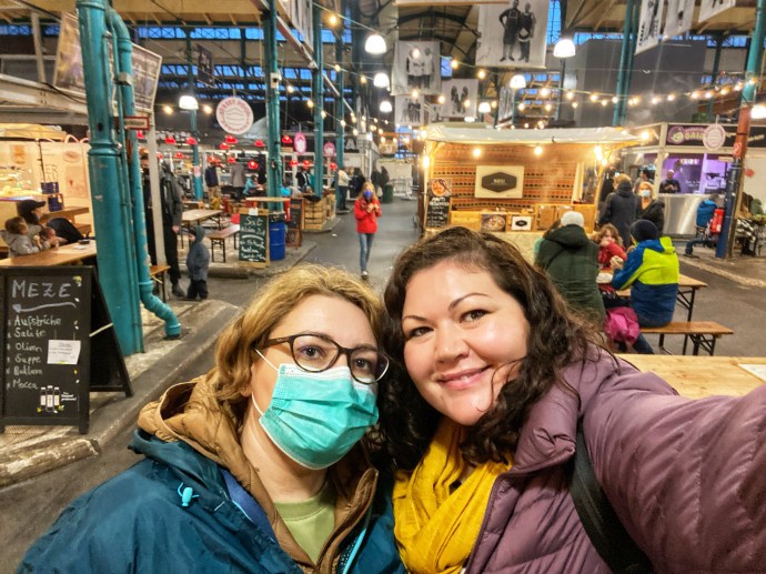 Tot la o piaţă, de data asta mai turistică, adică mai mult locuri de mâcancat acolo decât standuri cu produse, ajungem şi în partea de est a cartierului, aproape de râu. Depre Markthalle Neun am povestit în celălalt articol despre Berlin; bine intră un pahar de proseco într-o după-amiază ploiasă.