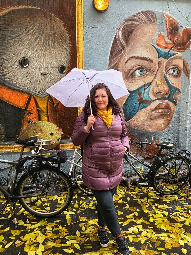 Joi o luăm frumușel prin kiez-urile astea, întâi în căutare de cafea și mic dejun bun, apoi pentru niște shopping (declarativ eu fără chef de așa ceva, cardul a simțit alta), apoi pentru delectare vizuală cu street art în aleea de la Haus Schwarzenberg. Berlinul e plin de murale superbe; poți să petreci multe zile la “vânătoare” de artă stradală autentică, nu mâzgâlici abuzivi. Toate astea pe ploaie mărunțică și pătrunzătoare la oase, cu pauze de interior pentru uscat geaca.