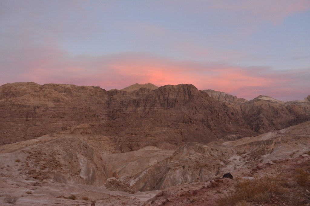 E prima dată când conducem, oricare dintre noi, mașină cu cutie automată și, pe drumul către Marea Moartă, Costel se lamentează preventiv cum o să apăs eu prea brusc frâna din reflex de călcat ambreiajul și o să îi zgudui ființa delicată (ceea ce nici măcar nu se întâmplă). Drept mulțumire, când trece la volan, îmi face vreo trei demo-uri, să înțeleg mai bine la ce se referea. Centura se strânge temeinic pe gât, telefonul zboară în parbriz, că doar încercam să pozez și eu drumul. Vis. Mâine Petra.