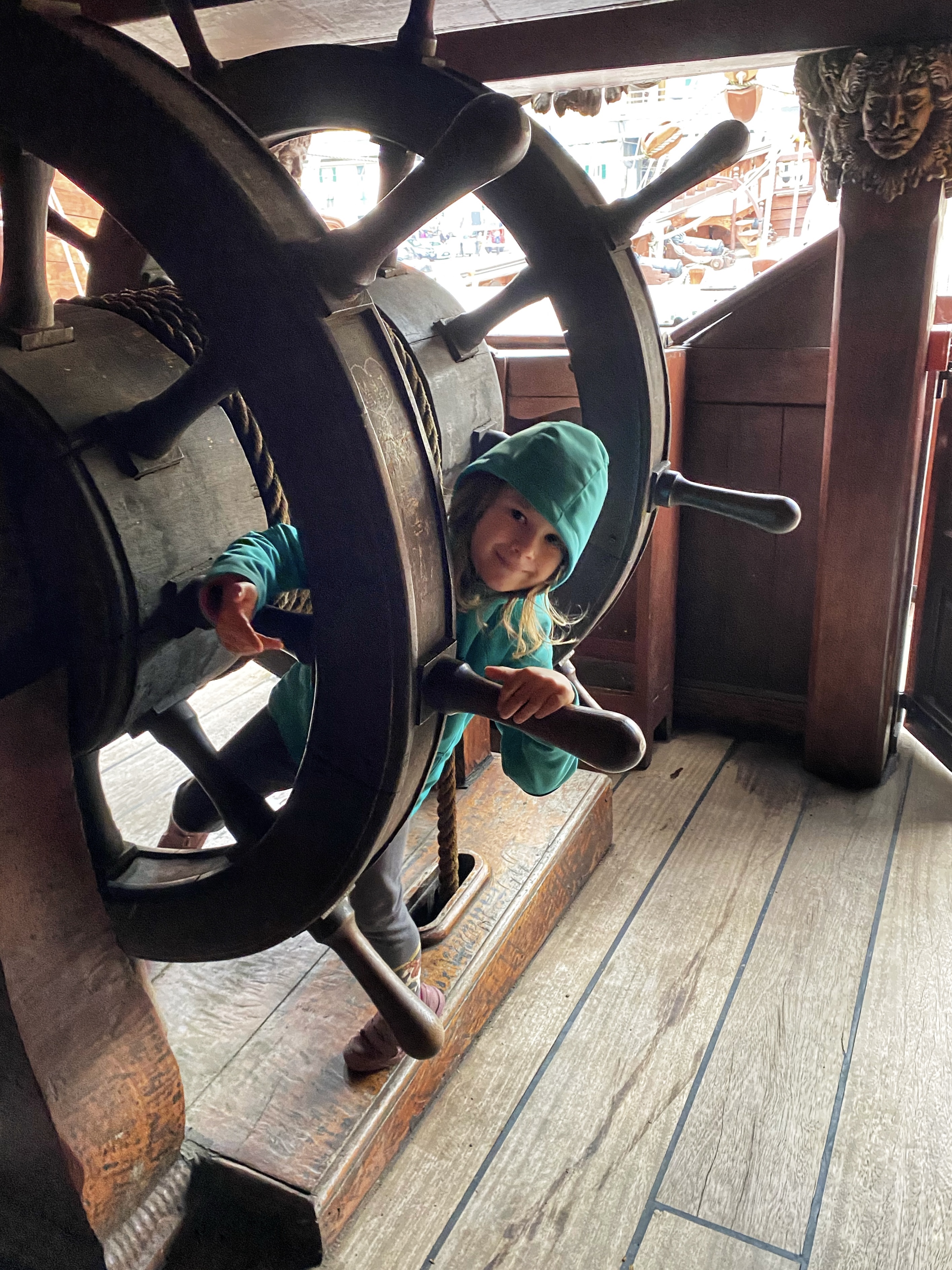 Tot în port, lângă acvariu, este o replică perfect funcțională, cică, a unei nave din secolul XVII (aş zice galion), folosită ca platou de filmare al unui film. Acum poate fi vizitată şi e chiar amuzant să urci pe punte, să te prefaci la cârma unei nave mari de război (n-ai cum să nu observi zecile de tunuri) sau să urmăreşti piratul mic cu aparatul foto.