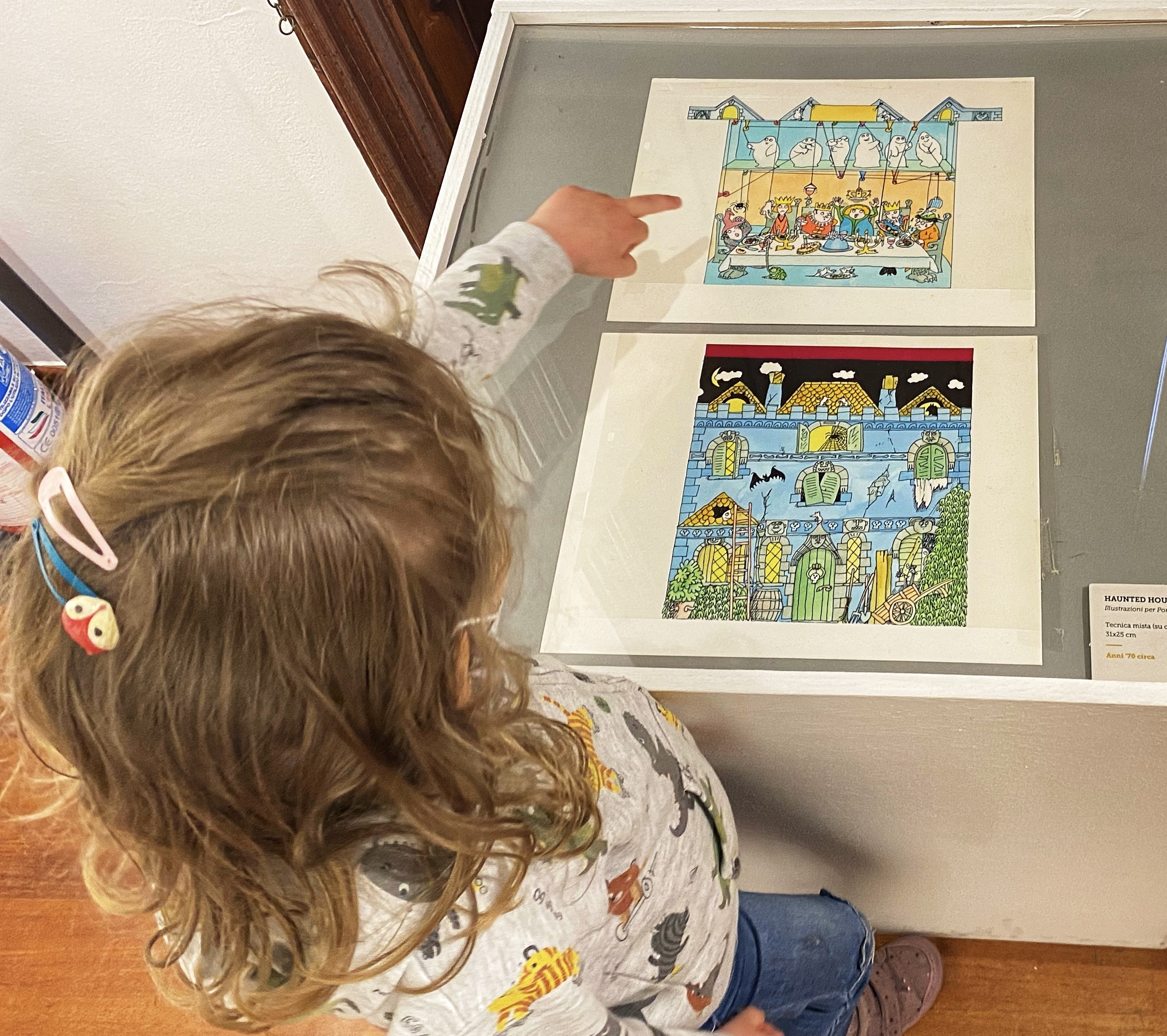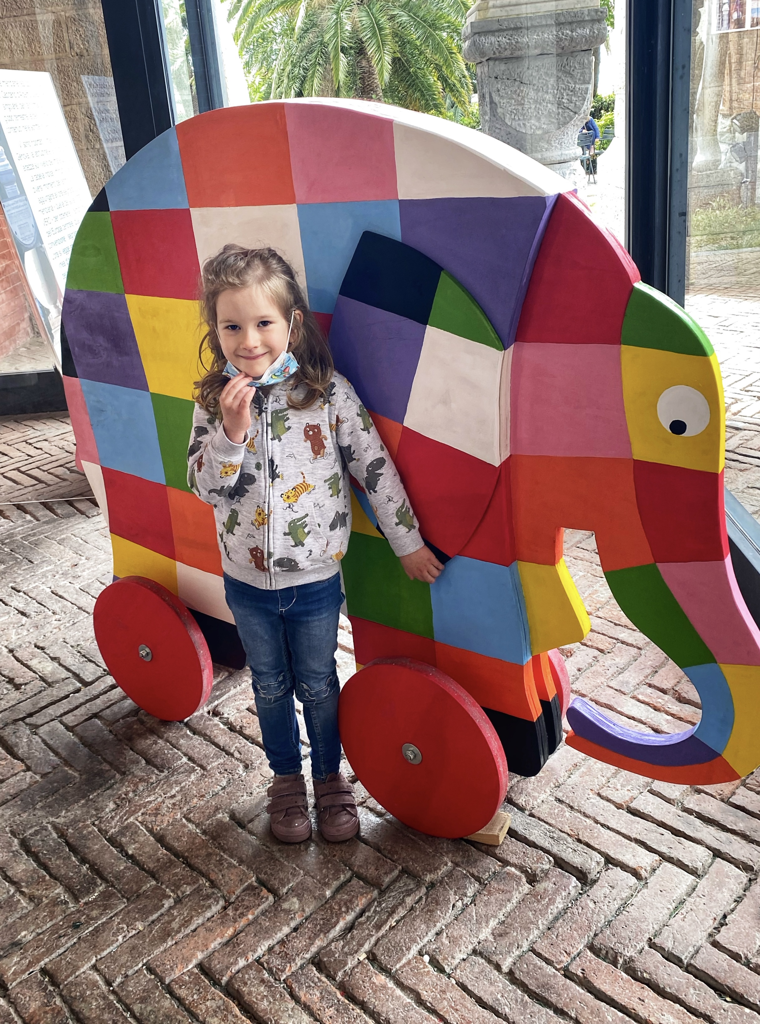 Castelul la care ziceam mai sus că ajungem cu liftul, Castello d’Albertis, a fost reşedinţa căpitanului (de navă maritimă) Enrico Alberto d’Albertis şi a fost donat de către acesta municipalităţii la moartea lui în prima parte a secolului XX. E un castel nouţ, construit pe locul unei fortificaţii mai vechi spre finalul secolului XIX pentru a sărbători 400 de ani de la „descoperirea” Americii de către Columb. N-am studiat dacă a avut şi ceva moşteniri căpitanul sau era într-atât de lucrativ să fii la cârma navei, dar cert e că locul e foarte plăcut. Curtea e de fapt o mare terasă cu privelişte grozavă asupra golfului, iar în interior e muzeu etnografic. Vera insistă să intrăm – eu nu sunt chiar convinsă – şi se dovedeşte chiar distractiv. Pe lângă colecţiile de artefacte din diverse părţi ale lumii şi secţiunea dedicată lui Columb, există şi o expoziţie măricică de ilustraţie de carte pentru copii, unde petrecem o bună parte din timp. Îl ştiţi pe Elmer, elefantul colorat? Îi regăsim atât pe el, cât şi pe alţi eroi pe aici, plus alte desene necunoscute până atunci, dar tare simpatice.