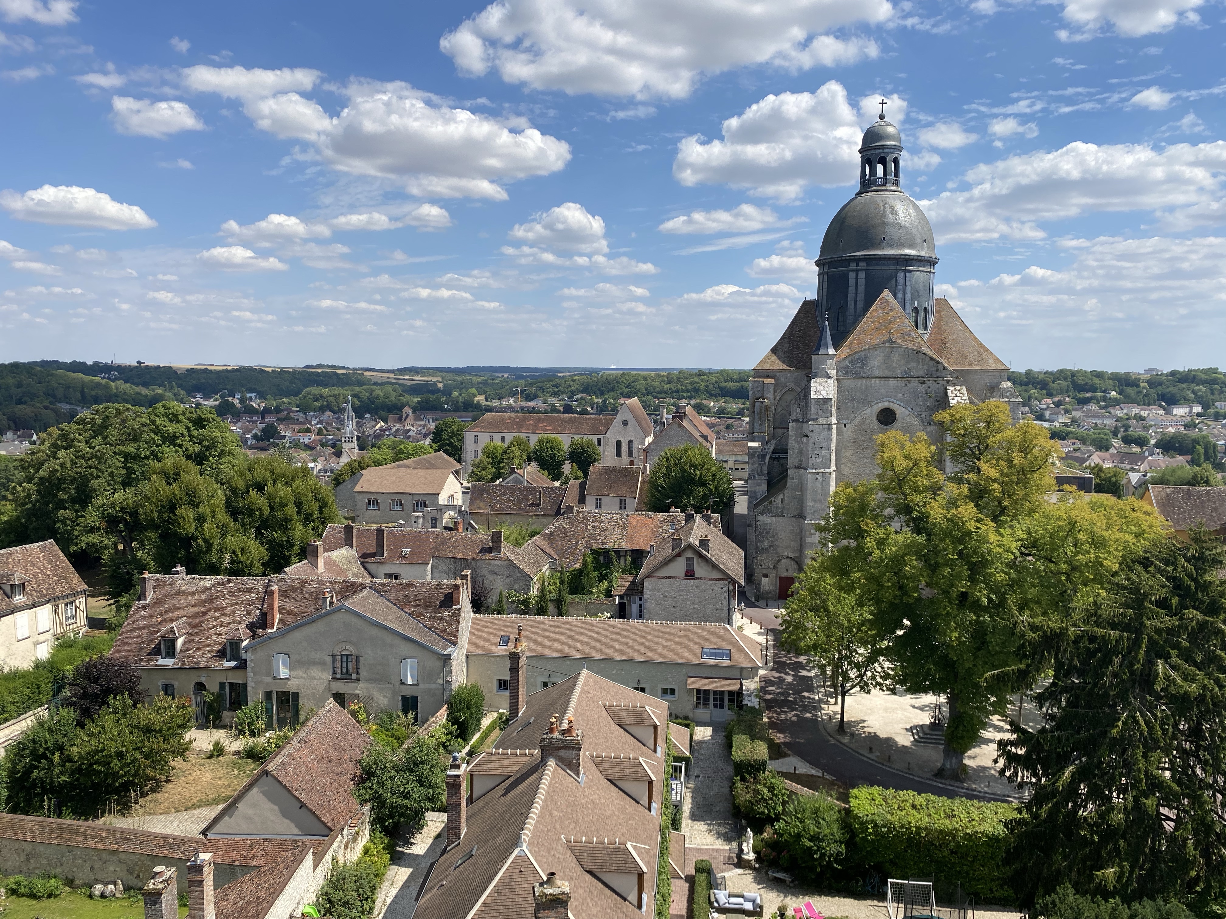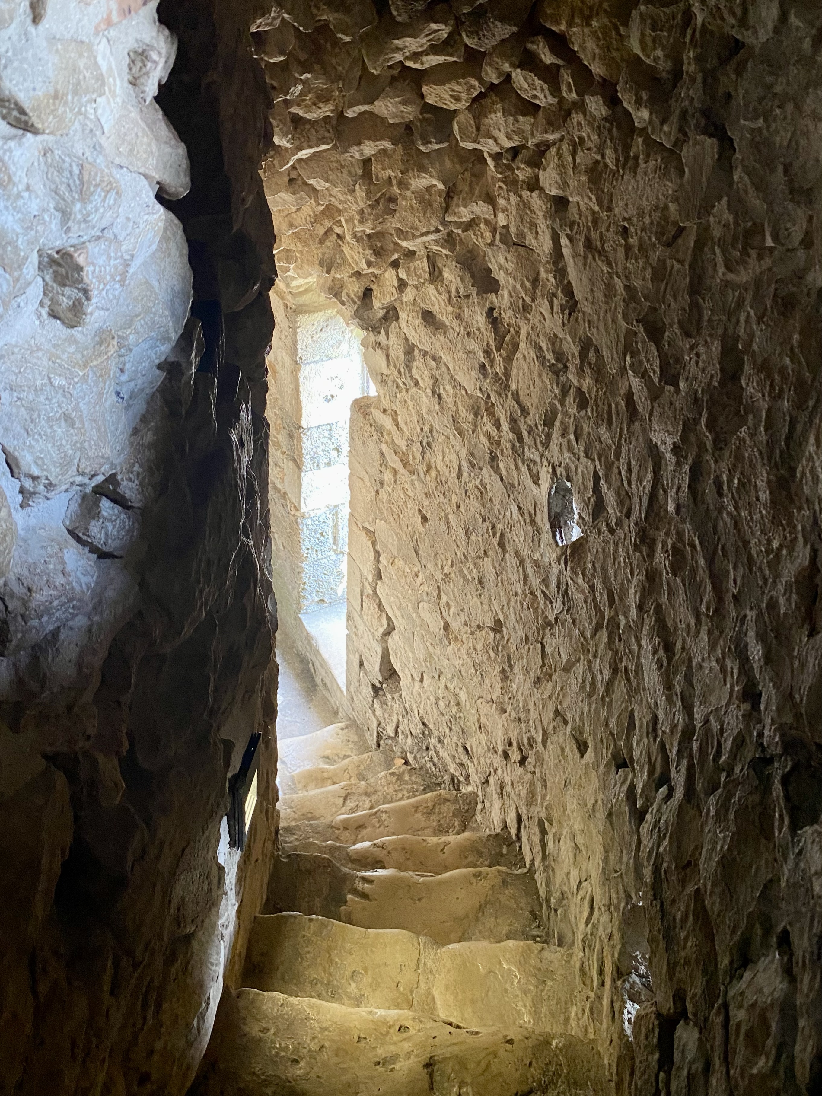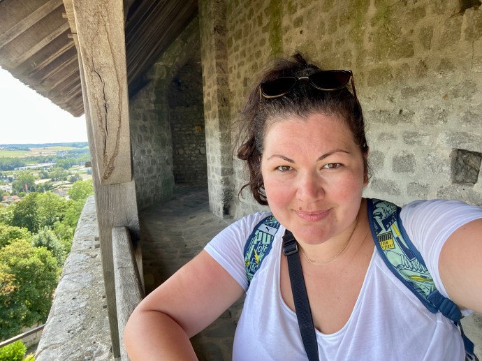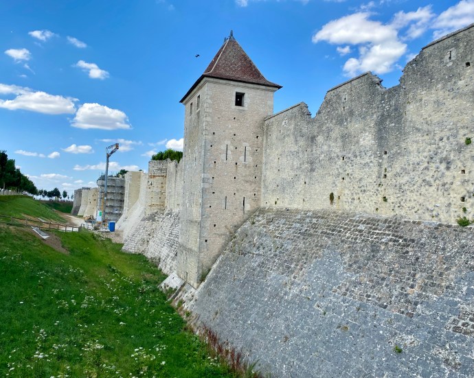 Vizitez turnul de apărare Cezar, construit în secolul XII de către conţii de Champagne şi folosit în secolele următoare ca şi închisoare şi, ulterior, ca şi clopotniţă a bisericii impunătoare de alături. E o clădire masivă şi e distractiv să urci din ce în ce mai sus pentru că şi peisajul se deschide asupra întregii văi. Dacă până la al doilea nivel scările sunt destul de accesibile, ca să urc până în vârf, la clopote, trebuie să strâng din umeri şi să mă strecor prin galeria îngustă cu trepte abrupte. Sigur nu era o zonă de accesat cu armură sau ceva echipament de protecţie masiv.