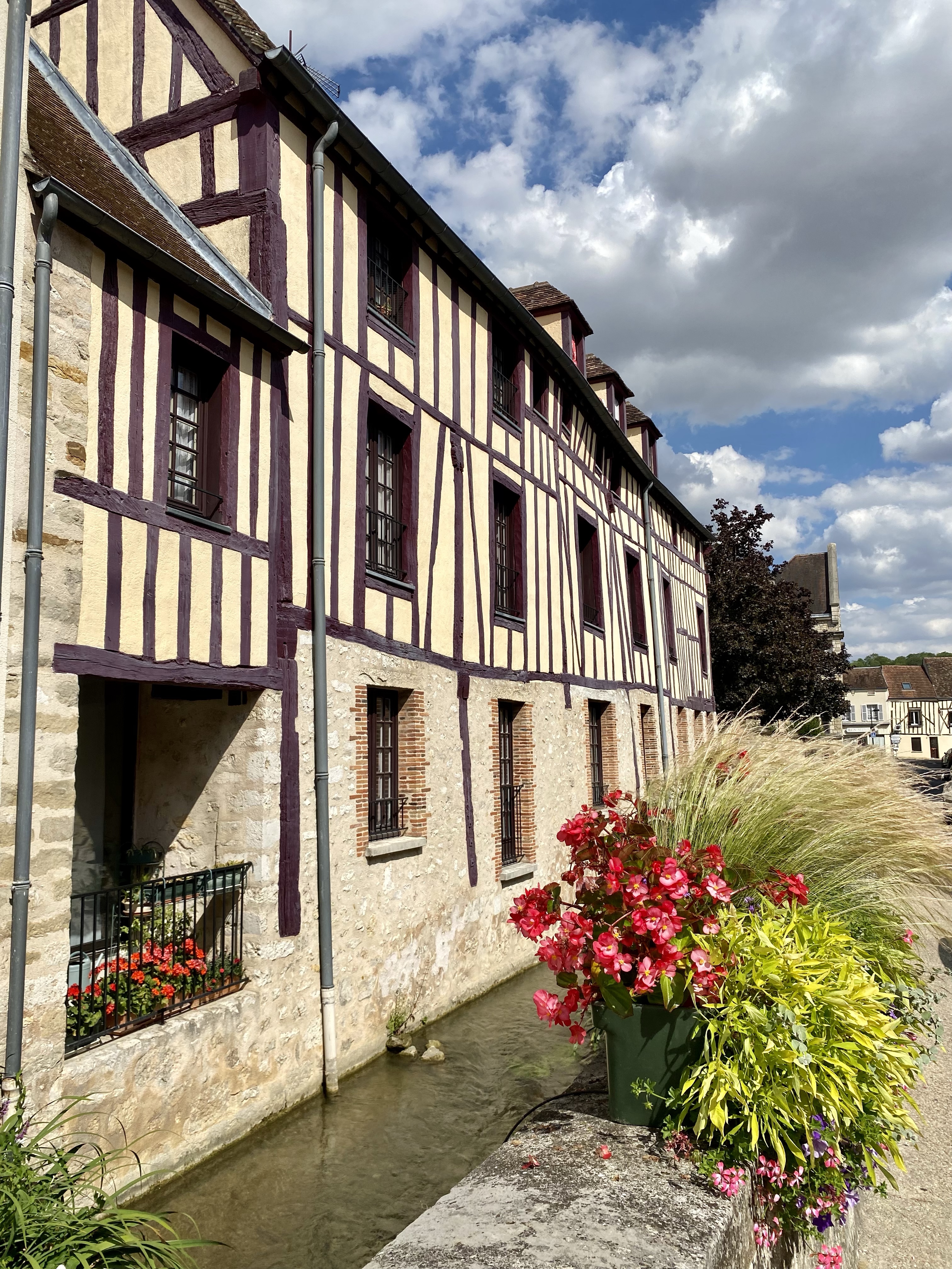 Ajunsă acolo, nu-mi pare deloc rău de alegerea rapidă făcută: pitoresc e cel mai bun cuvânt să descrii orăşelul. Majoritatea caselor sunt păstrate cu arhitectura medievală cu bârne vizibile prin pereţi (îmi închipui că le-au mai consolidat între timp), un canal micuţ mărgineşte zona centrală şi cineva din administraţia locală are o pasiune pentru jardiniere cu aranjamente florale opulente.