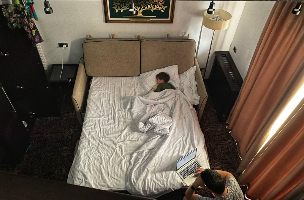 Noi dormim fiecare părinte cu un copil și ideal în camere diferite, ca să evităm chirăiala amânătoare de somn. Deci preferăm apartamentele, inclusiv la hotel. N-am studiat dacă au și altfel de apartamente, dar ăsta de l-am primit noi avea scară interioară între living și dormitor, deci prilej de joacă pentru copii și multă mișcare pentru noi, să nu se împrăștie piticul cel mai mic. A fost în cunoștință de cauză, însă, nu ne putem plânge.
