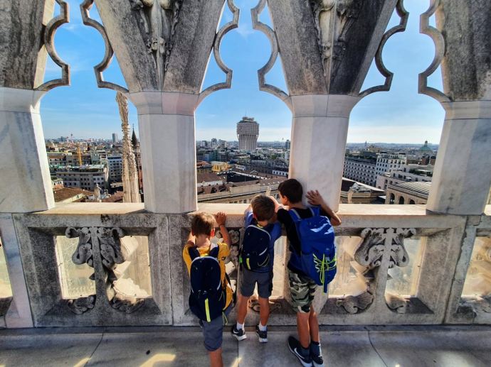 Copiii sunt înscriși la o școală americană care susține homeschooling-ul și învață în moduri diferite. De exemplu, acum suntem într-o rezervație de ibis, unde sunt ultimele 700 astfel de păsări din lume. Am căutat un documentar pe Youtube si am aprofundat subiectul, apoi am observat păsările pe stânci și le-am desenat. Poate că nu e subiect de olimpiadă, dar face parte din cultura generala și cred că e important. Alte lucruri de bază, cum ar fi matematica, le facem zilnic sau periodic dimineața în camper, după o curiculă. Avem foarte multe materiale după care facem școală, plus toate lucrurile pe care le deprind în mod neacademic. În muzee învață cel mai mult: la Pompeii, de exemplu, a fost foarte fain, am invatat multe (și noi adulții) despre Roma antică și despre vulcani. Cam așa se învață: văzând, documentând, schimbând impresii și răspunzând la sutele de întrebări.